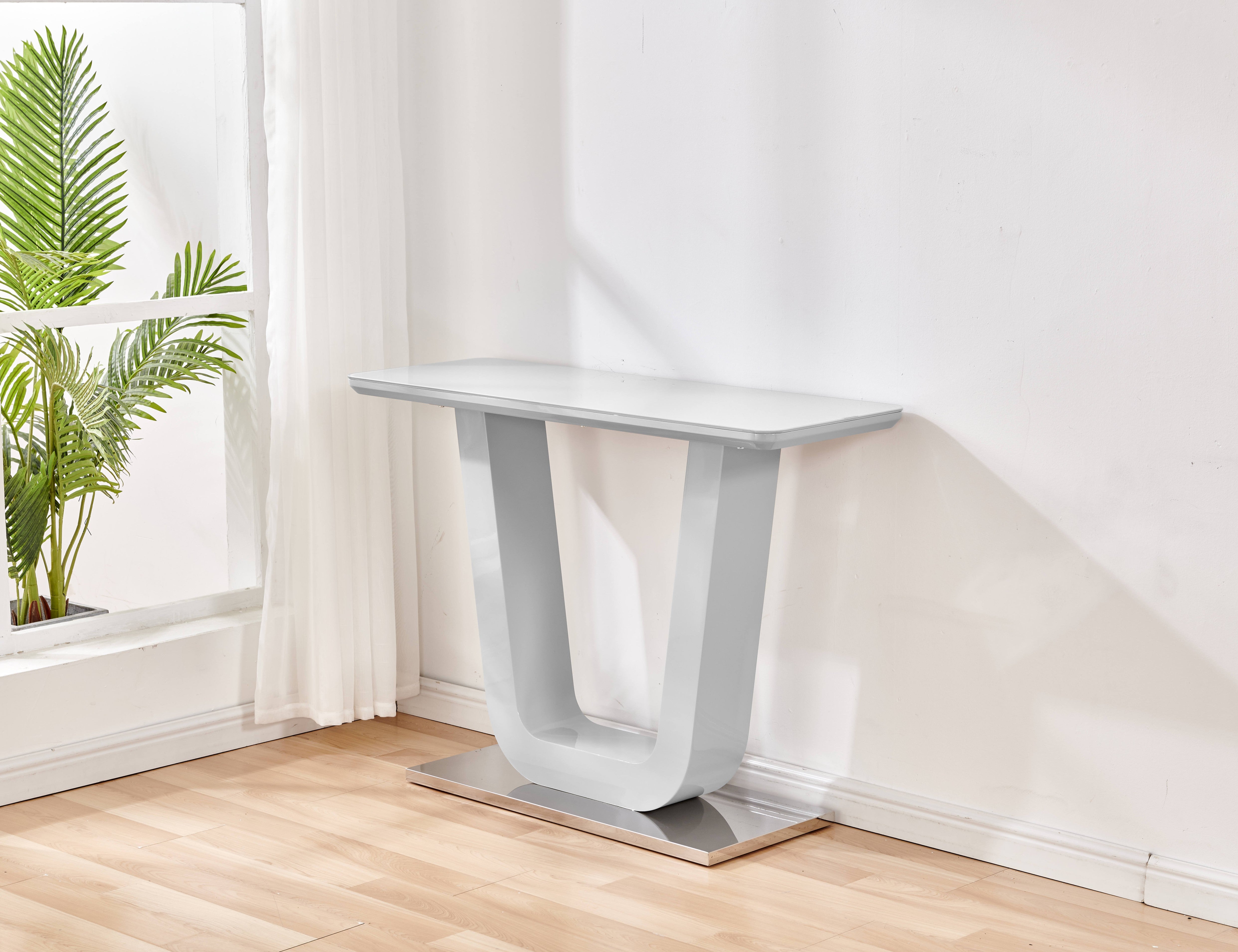 This Edel Console Table features a modern design with a hardwood top and stainless steel legs. Its sleek and compact size makes it perfect for entryways, hallways, or living rooms. The combination of style and durability ensures long-term enjoyment.