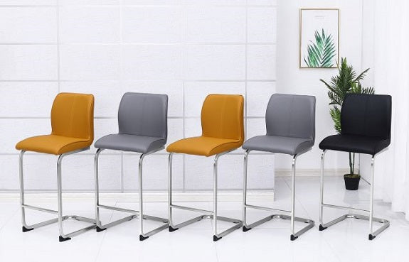 Available in Grey,Pumpkin, or Black PU with brushed steel frame. Size 100(H) cm. Seat Height 69cm.