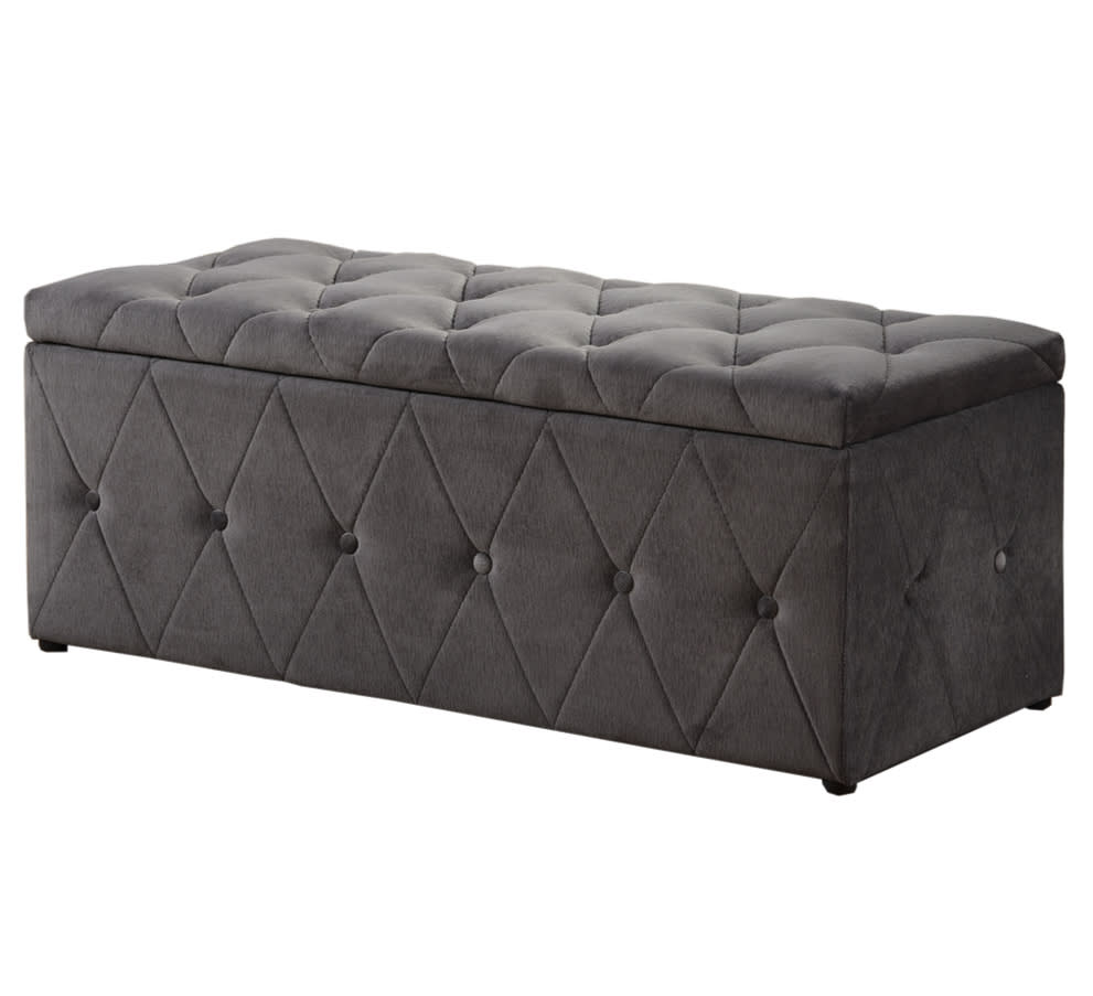 Jersey dark-grey blanket box is covered in a luxury fabric material. This beautiful storage box has excellent inner storage and a gas-lift feature for easy opening.