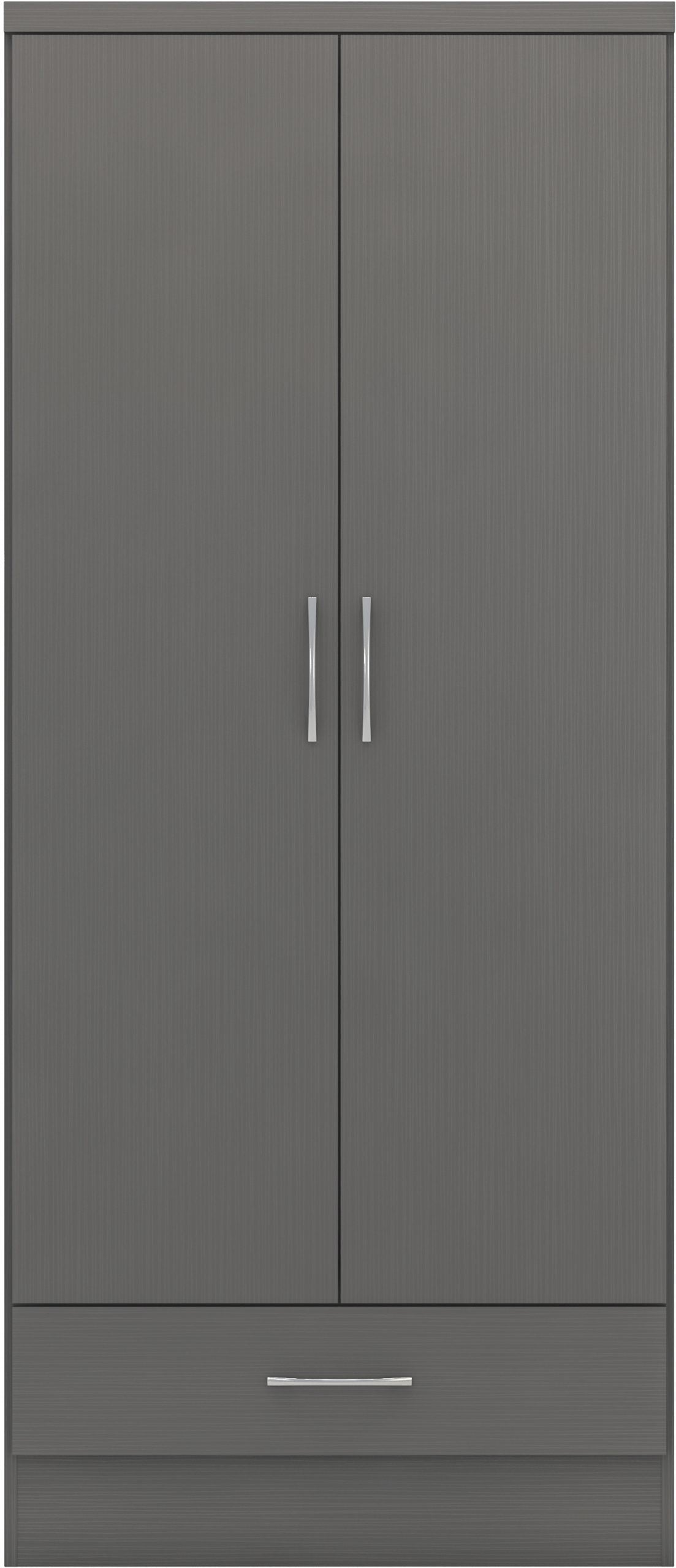 Product Materials: COMPOSITE BOARD, 3D PAINT EFFECT, 3D PLASTIC VENEER, MDF BACK PANEL, MDF DRAWER BASE, METAL HANDLE, METAL HINGES, METAL DRAWER RUNNERS, METAL HANGING RAIL, PLASTIC FEET
