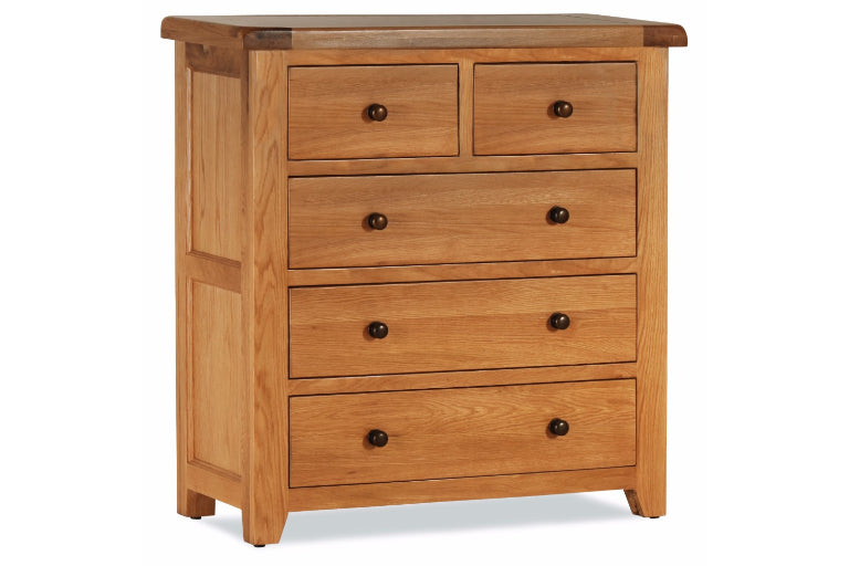Oscar Bedroom Range is Finished in solid oak with a semi-gloss lacquer seal. The rounded oak corners give a gentle feel to each solid piece.
