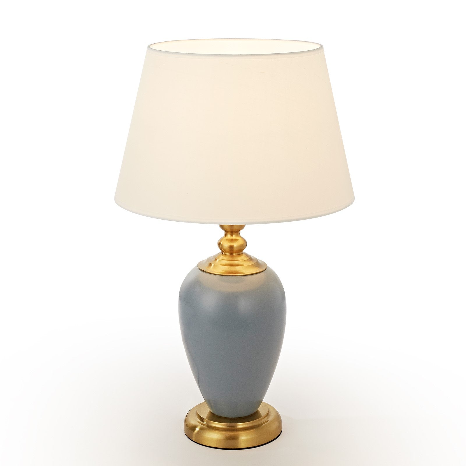 Introducing the T2313 Lamp, a stunning embodiment of modern elegance and artistic flair. With its captivating gold, blue, and white color finish, this lamp is a true statement piece, adding a pop of color and sophistication to any space. The sleek blue body, complemented by a luxurious gold base, exudes opulence and style. Topped with a crisp white shade, it casts a soft, ambient glow, creating a welcoming atmosphere.